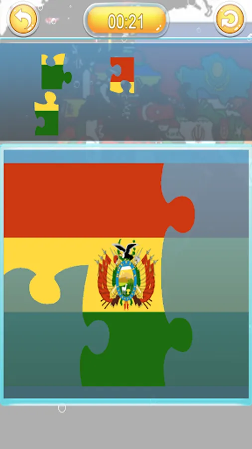 Each level in Flag Jigsaw Puzzle will feature a different country flag. The player must collect the puzzle pieces scattered around the screen and arrange them correctly. Players can rotate and slide the puzzle pieces to find their exact position.
