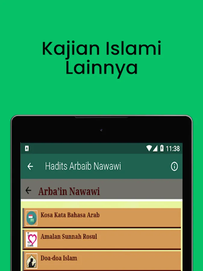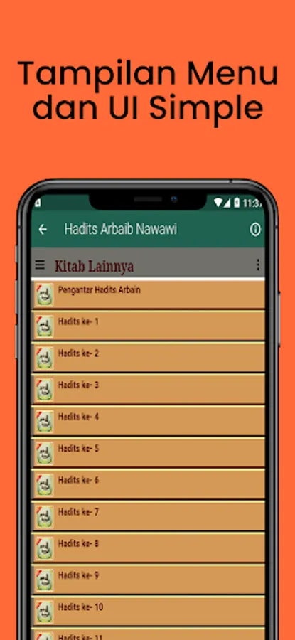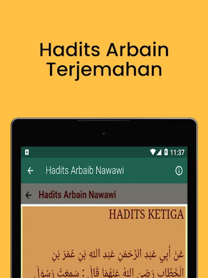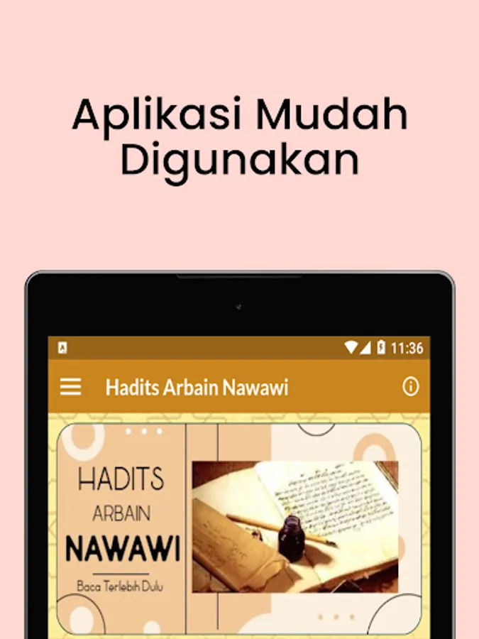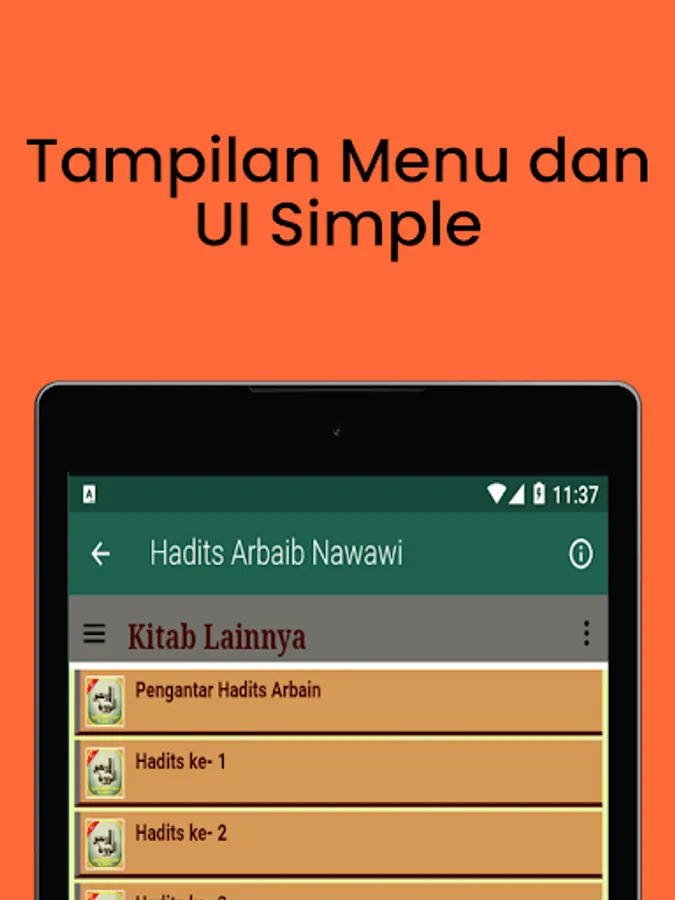 In the Hadist Arba'in Nawawiyah application - COMPLETE Indonesia is summarized easily for your daily use, download the Complete Explanation of Imam An-Nawawi's Arbain Hadith which will always be the latest and updated as a complement to Islamic studies. Don't miss to get a collection of 42 hadiths of Arba'in Nawawi without internet with the easiest translations that will always be updated for all of you, of course you will never lose to download the Hadith application Arba'in Nawawi: This Matan and Translation !! What are you waiting for, immediately download now.