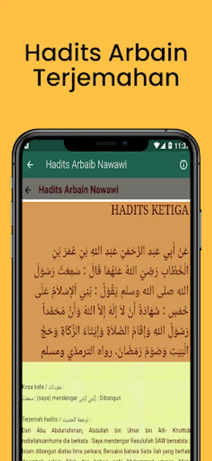 One of the latest applications is Offline Arbain Imam Nawawi Translation of Syarah Hadith we can get through your Android cellphone easily, Arbain Nawawi Hadith Complete for all of you everywhere. Sometimes we have difficulty getting Arbain Nawawi Hadith 1 - 40 Complete Meanings and Sharah to be practiced? The difficulty to get the Download of the Arba'in an-Nawawi Hadith Summary at this time? We present the following: Download Hadith Arbain Nawawiyah, Terjemah & Syarah PDF, which is an important reference for all of you. Through the application of 42 Hadith Nabawi Essay by Imam Nawawi besides that it can also be easily used through your Android device respectively.