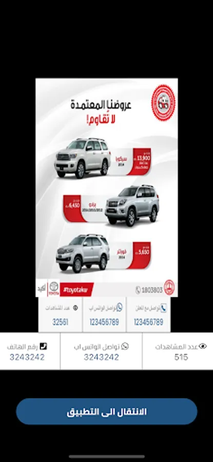 - Ease of advertising work. You can advertise your car with ease from the application and as soon as possible.