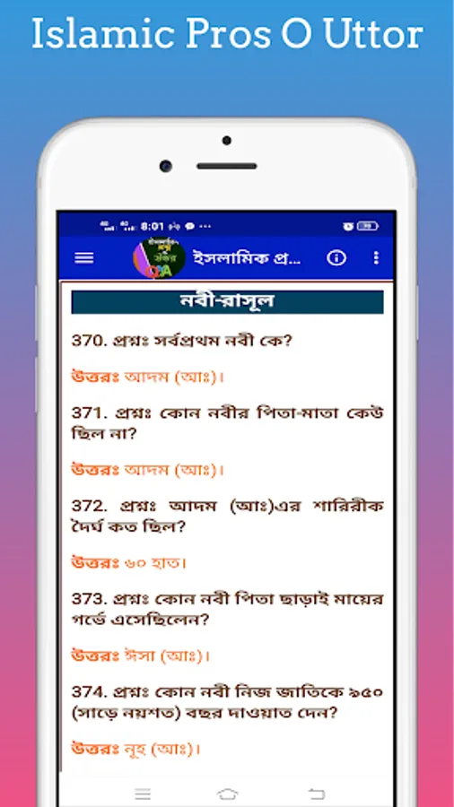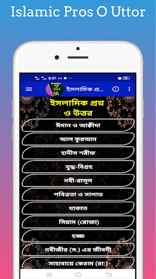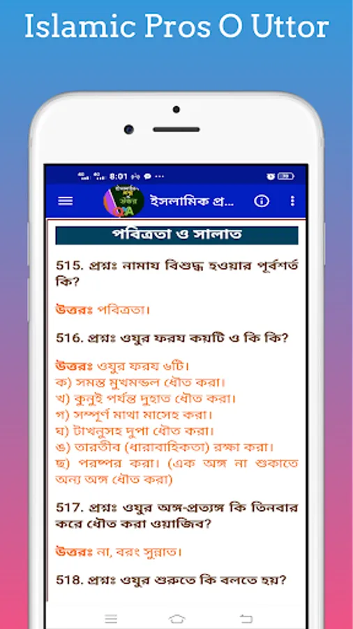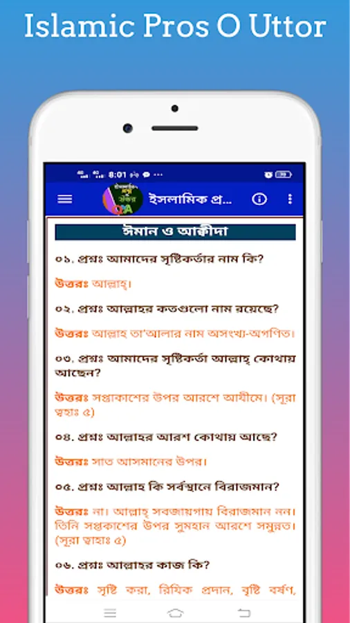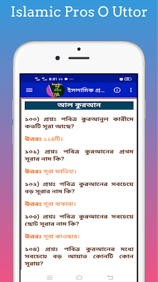 Islamic Questions and Answers ~ With Islamic Prosno O Uttor you can easily learn about Islamic quiz books and Islamic questions and answers. This will allow you to easily learn about Islamic general knowledge and Islamic knowledge quiz. Islamic Prosno O Uttor With this app you can easily find out about Islamic Q&A and Islamic known unknown.