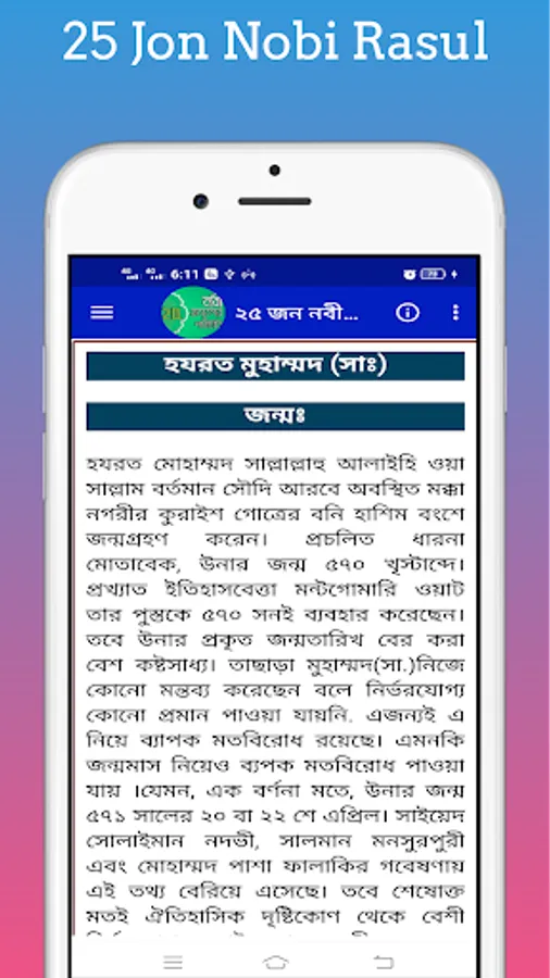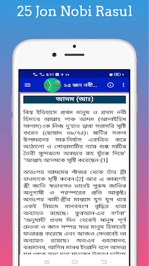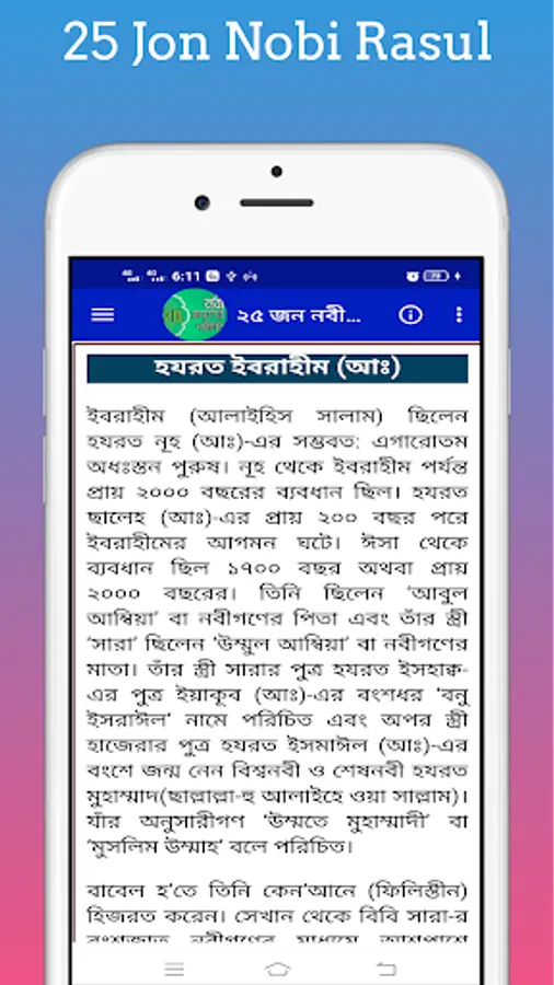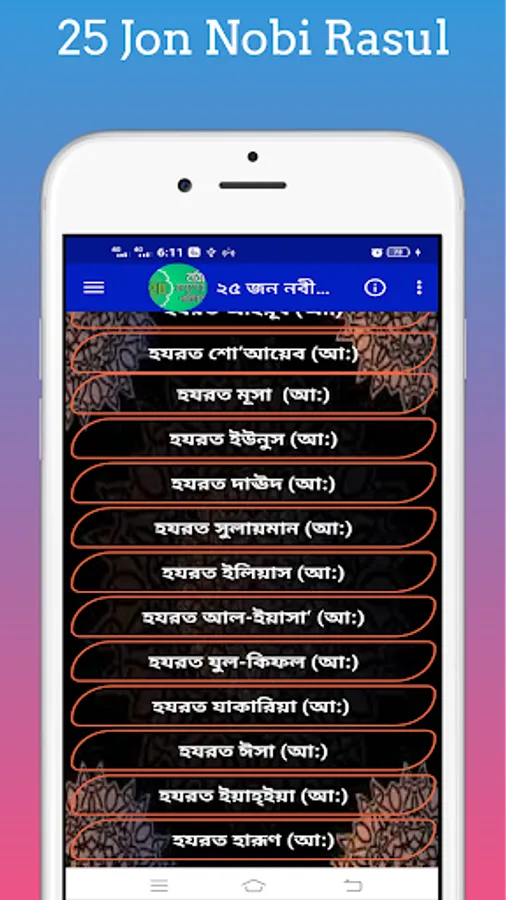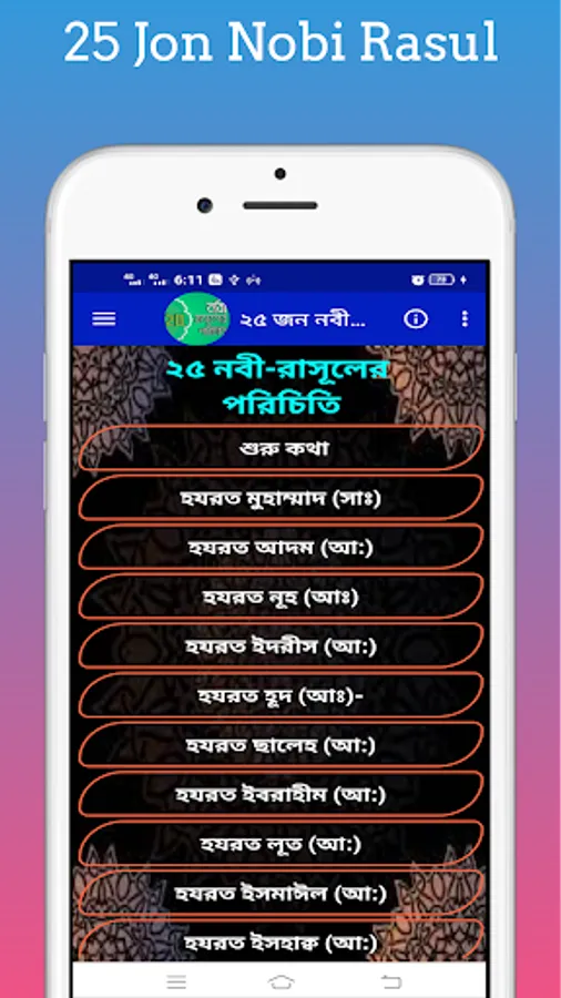 Introduction to Prophets With this app you can easily know the list of names of prophets and the names of 25 prophets and the identities of 25 prophets mentioned in the Quran. Names of 25 Prophets With this app, you can easily find out the names of all the prophets, where a prophet came from. 25 Nabi-Rasuler Jiboni With this app you can easily find out the list of names of new prophets after any prophet and how many prophets are in the Quran. With this app you can easily find out the names of all the prophets and messengers and who the prophets and messengers are.
