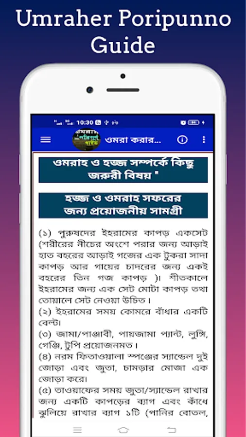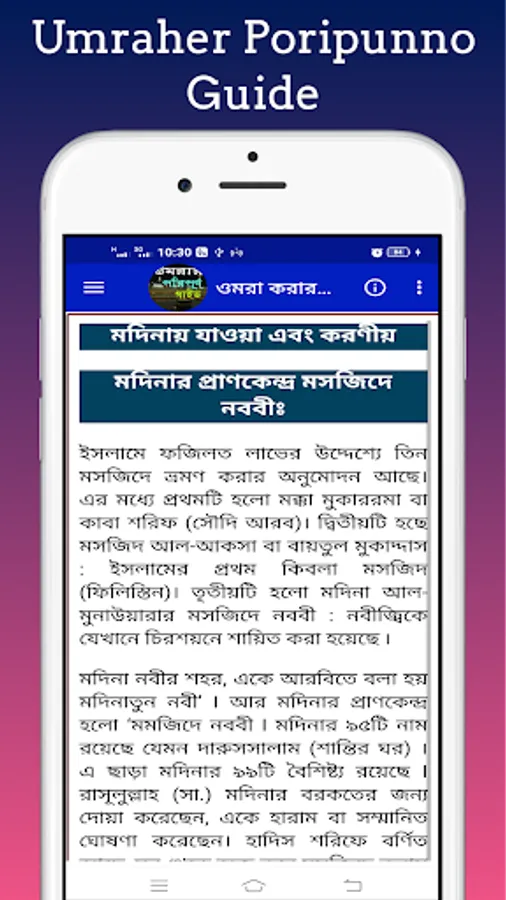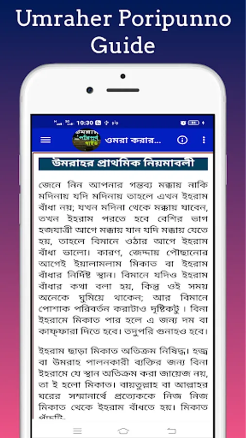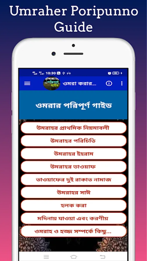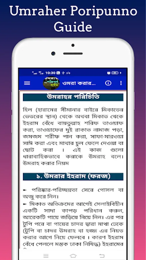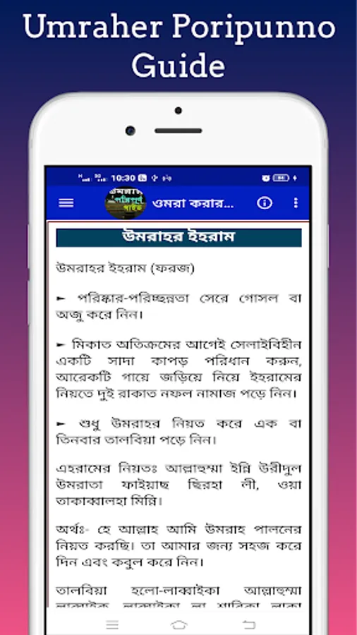 It is the umrah guide app. The app is umrah guide bangla. It has complete umrah guide with duas. Everybody can learn how to do Umrah from this app inshaallah.