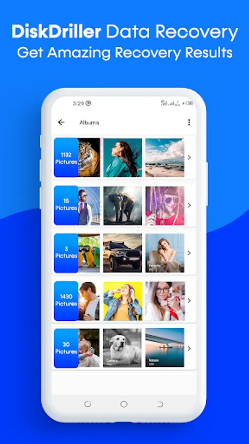 Deep Media discovery is the solution to help you find your lost files from your internal storage or external storage. Other applications can take a long time to discover your lost files as they use old and lazy algorithms. Disk Driller is using the latest technology in the application, which contains fast, efficient and optimized algorithms for using recovery in your mobile phone