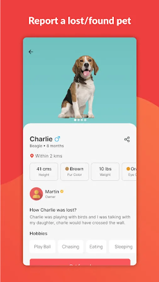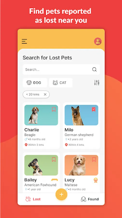 The goal is to bring like-minded people together and make a common platform for them which makes users easy to find currently lost/stray animals reported in their area. The conventional methods for posting lost reports on a notice board are no longer a viable option and this app is trying to modernize the methods to make pet owners lives easier.