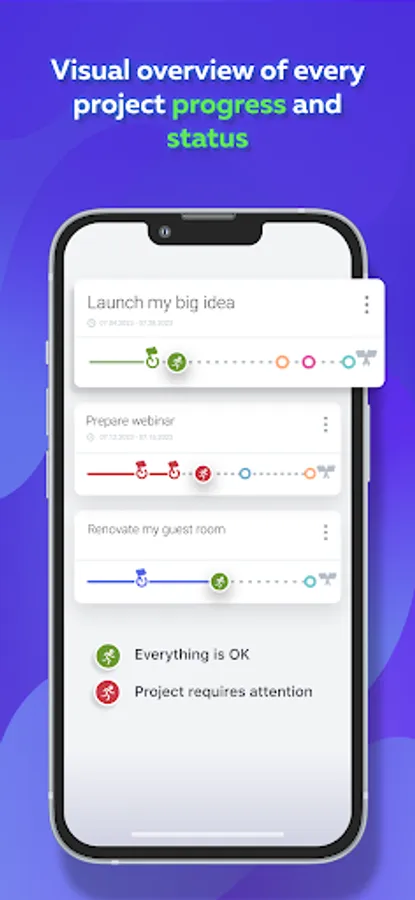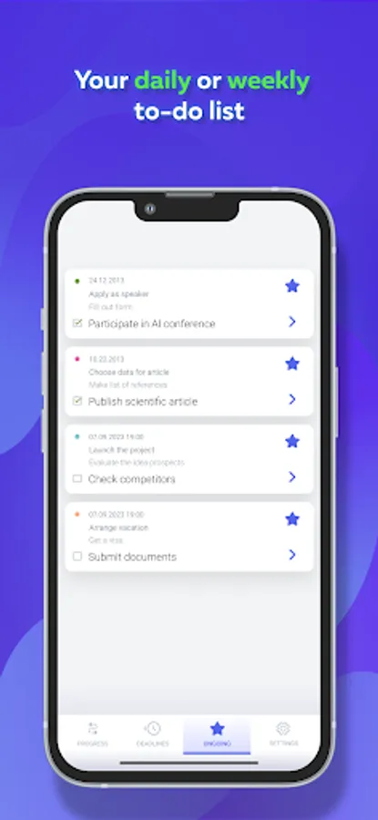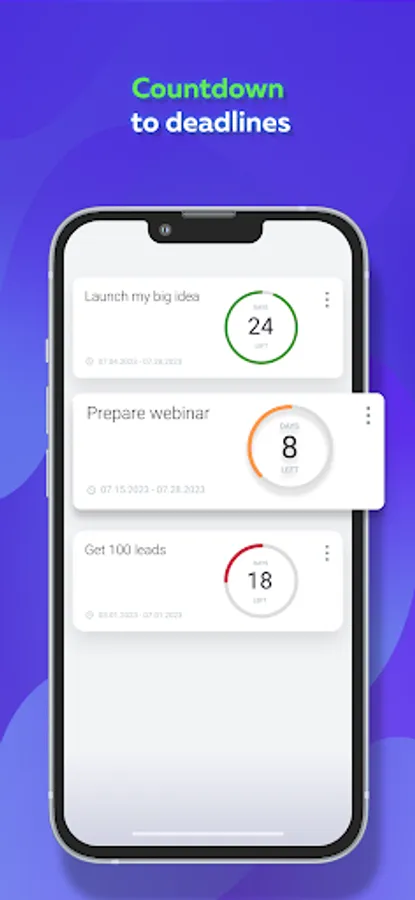 On the Deadlines screen, keep track of how much time is left until the completion of the next stage and the whole project.