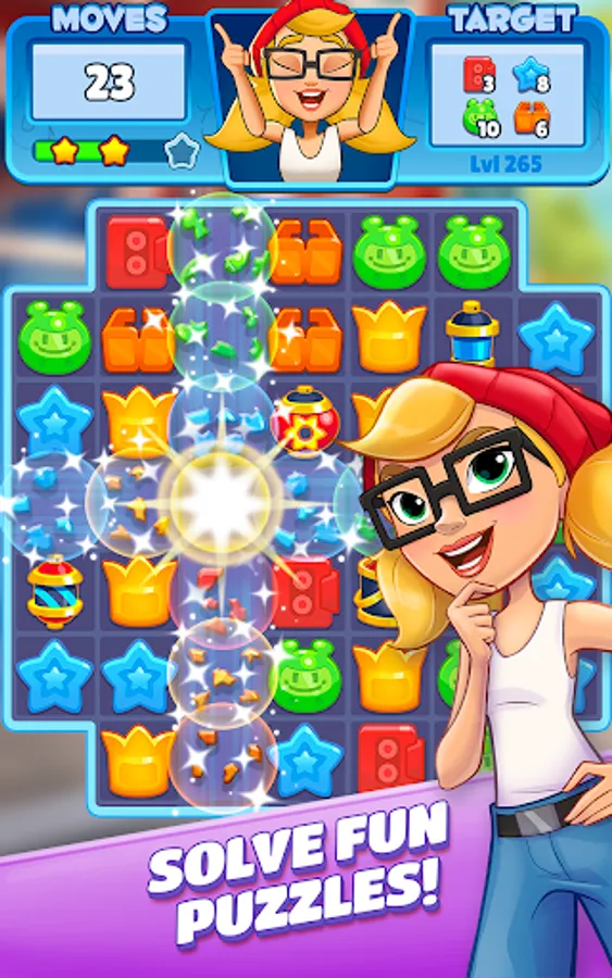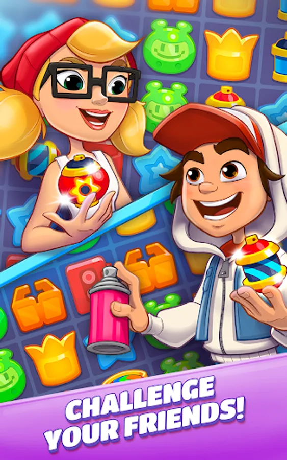 Experience Subway City like never before, with hundreds of colorful match-3 puzzle levels. Collect spray cans, use them to decorate murals and expand to new locations.