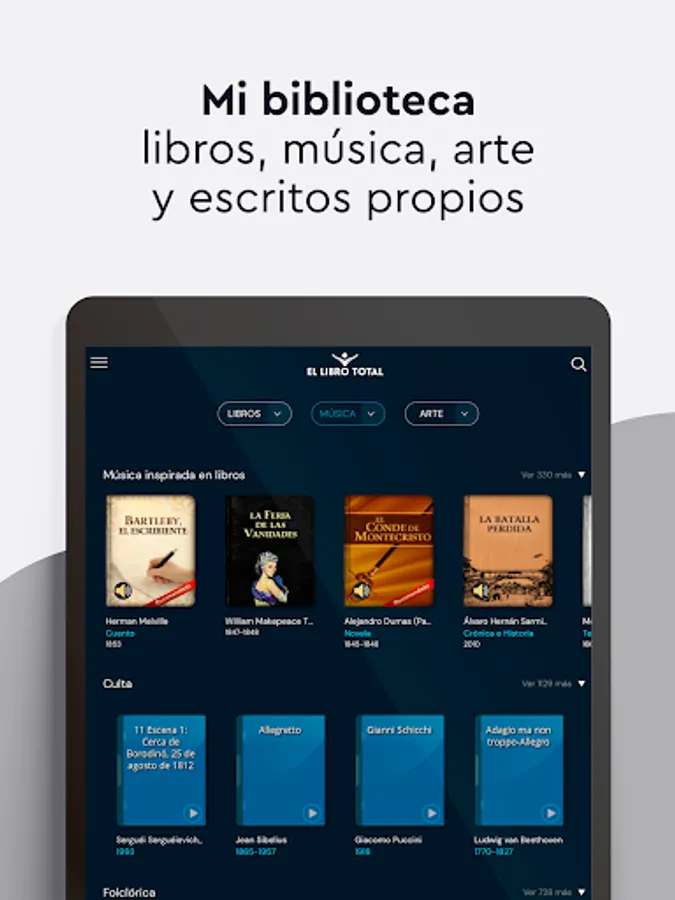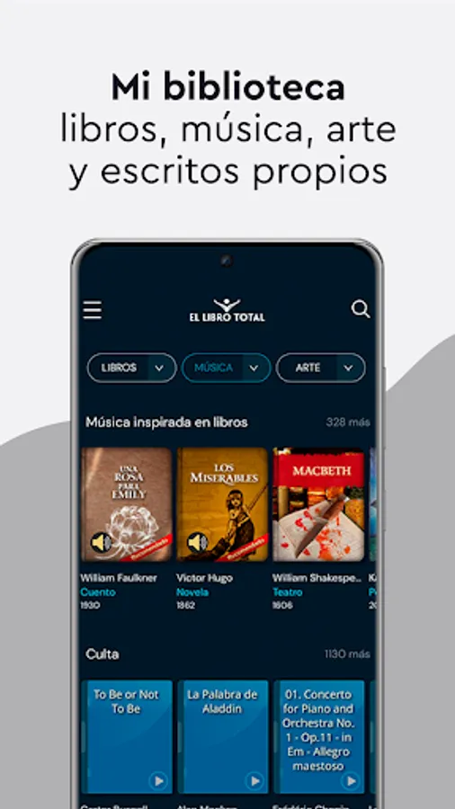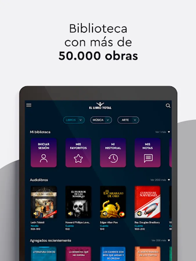- Create a personalized library with favorite works, own writings and latest readings.