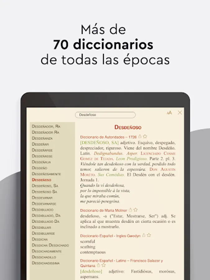 - Find the meaning of all the words in more than 70 dictionaries by clicking on them.