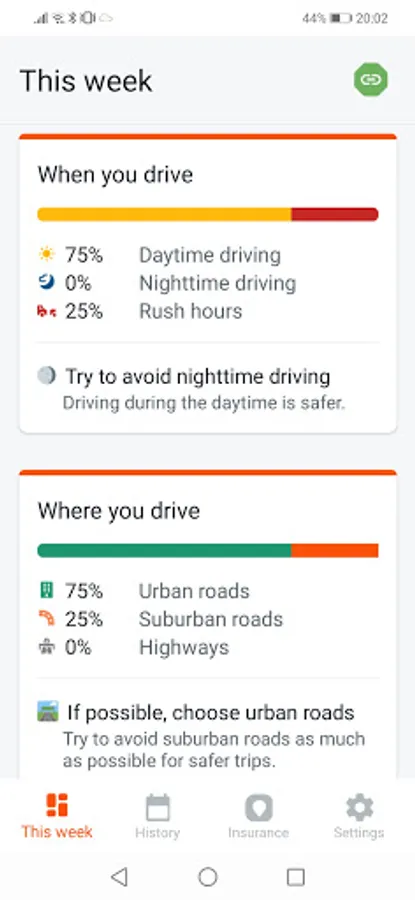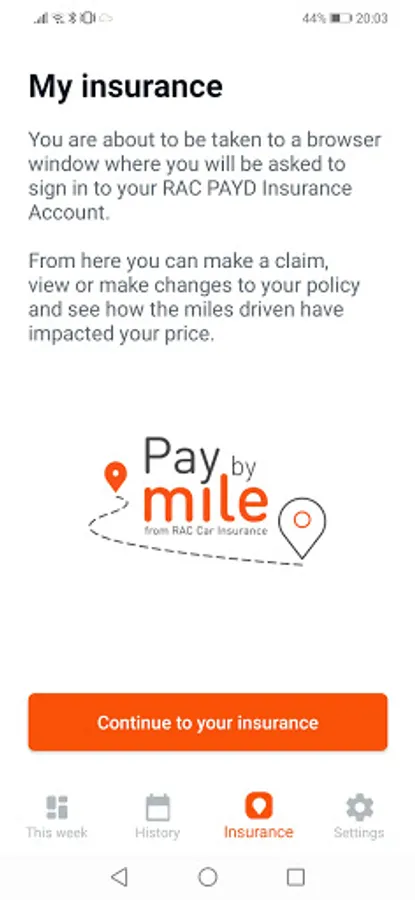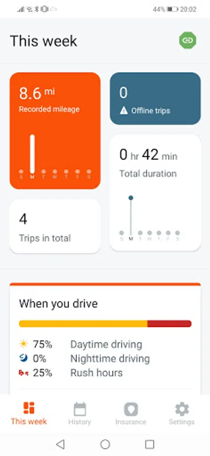The Pay by Mile app displays the miles you’ve driven, your total trips, the times of day you drive (daytime, night-time or rush hours), where (city, rural or motorway) and how long for.