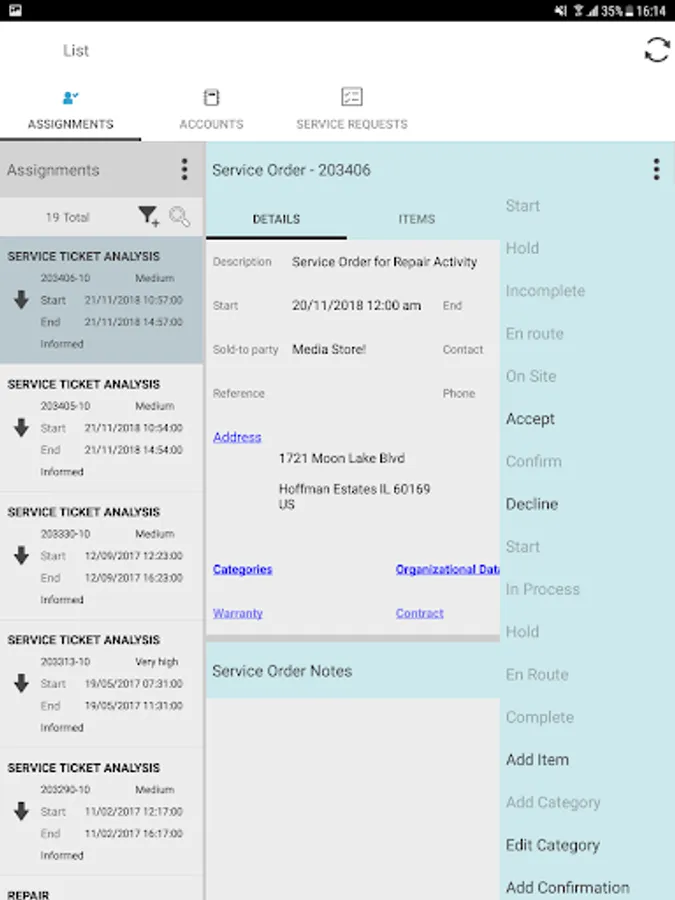 With the SAP CRM Service Manager mobile app for Android, you can maximize efficiency and effectiveness of your field technicians by providing them real-time access to relevant information and tools. The app connects to the SAP Customer Relationship Management (SAP CRM) application and enables status updates, last-minute changes, and accurate data capturing to help achieve higher first-time fix rates.