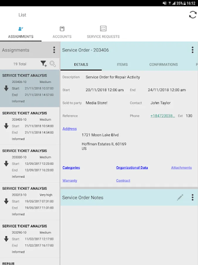 Key features of SAP CRM Service Manager for Android