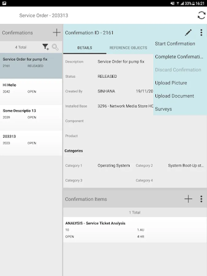 • Manage service orders, and create confirmations in real time