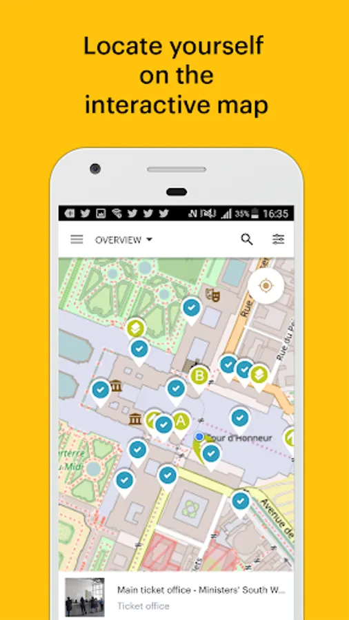 Thanks to the interactive map, it’s easy to find services (Wi-Fi, toilets, restaurants, etc.) and places of interest in the Palace, the Gardens of Versailles (the Groves, the Orangery, Latona Fountain…), the Trianon Estate (Grand Trianon, Petit Trianon, the Queen’s Hamlet...) and the Park (the Grand Canal, the Royal Star...).