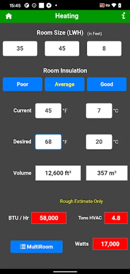 - Heating: how many BTU's and ton of HVAC needed to heat or cool an area to a specific temperature