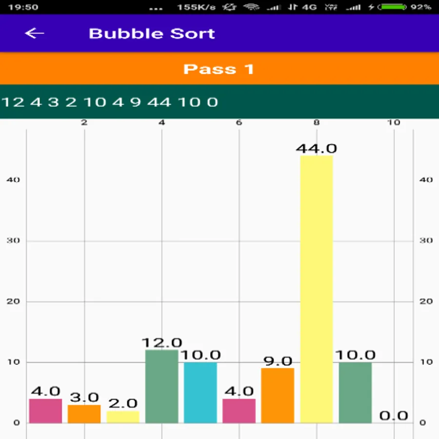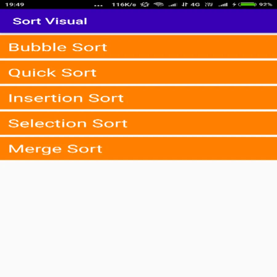 It is a useful app to visualize the important sorting algorithms.One can enter his array and then the app will show the process in a bar chart.At last the user will see the no. of comparisons in the sorting process.