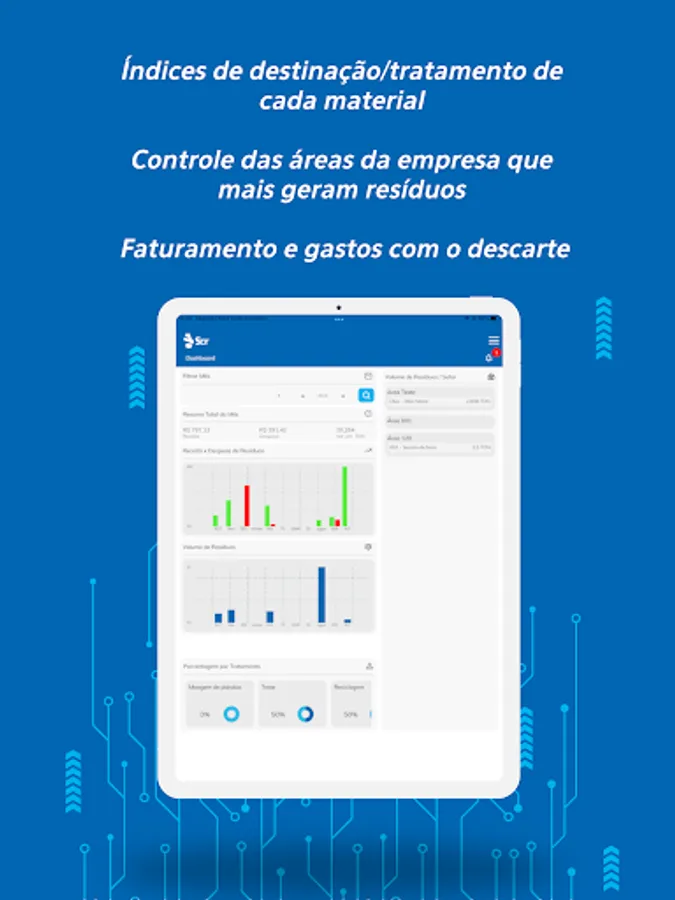 In a quick and simple way, they can manage the disposal of materials, obtaining results for a better quantitative planning on the generated waste, destination/treatment rates of each material, control of the areas of the company that generate the most waste, billing and disposal expenses. etc.