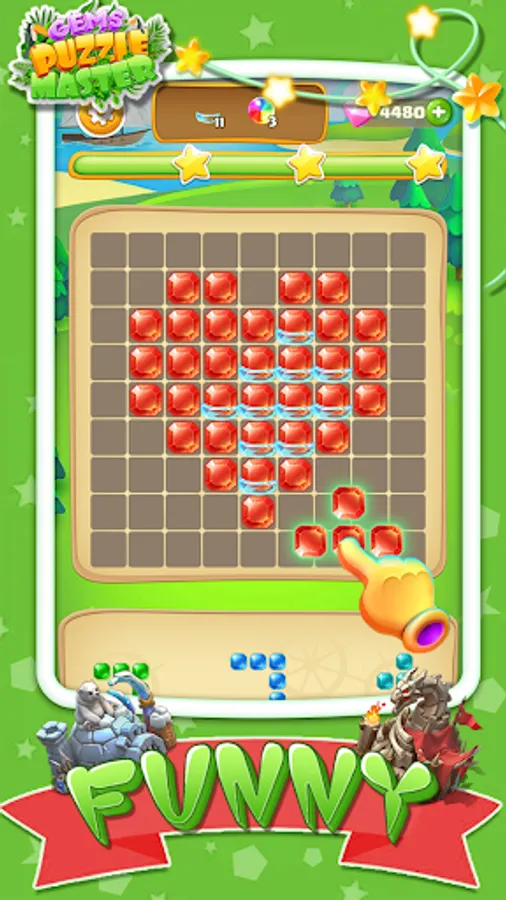 2.When the Gems on the grid reaches a row or column, it is eliminated and you can earn points;