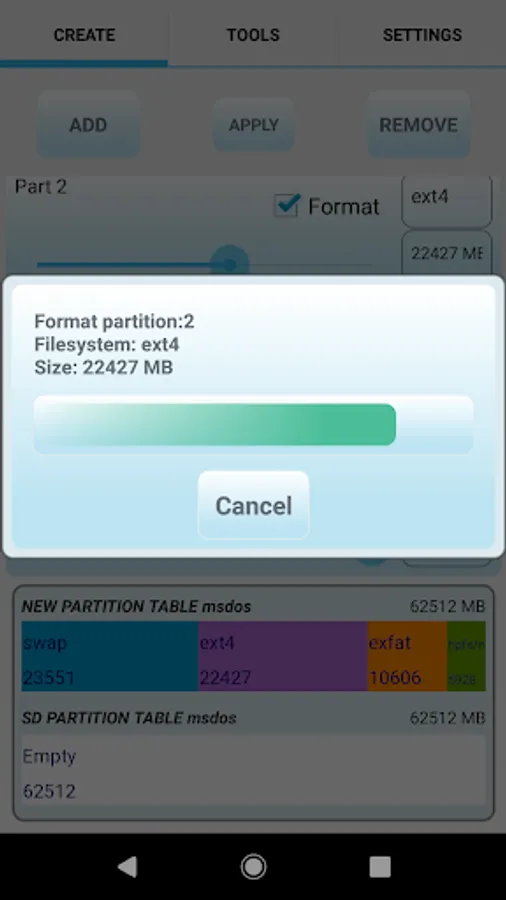 This tool allows you to create partitions and administer them in your sdcard or usb device.