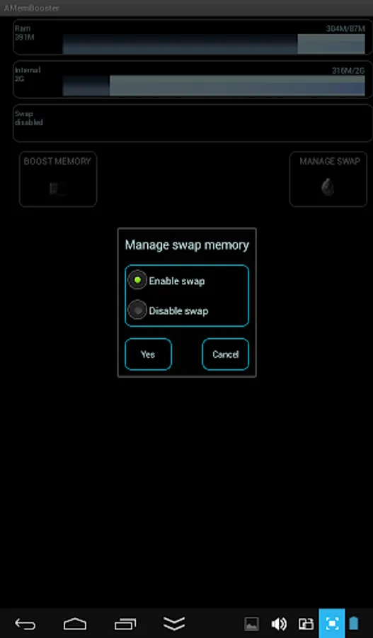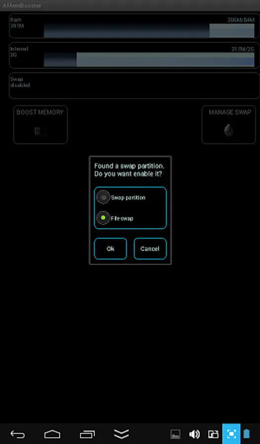 AMemoryTool is an application that shows the memory usage of the sdcard, ram and swap.
