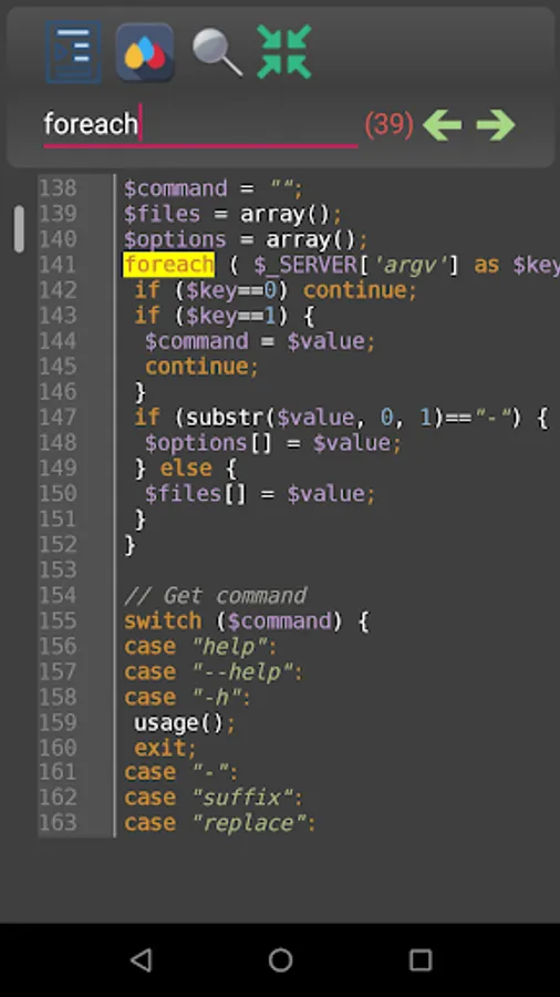 A great choice for editing php in your own android and with the same features as a profesional editor.