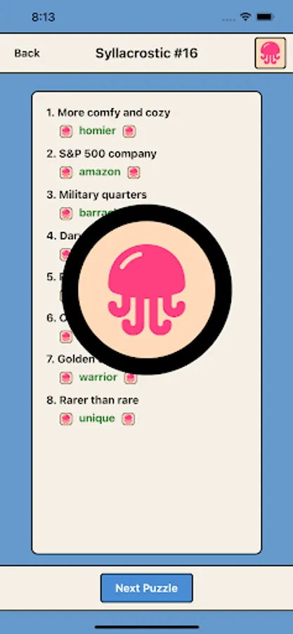 Find the answers to the clues, one syllable at a time! Syllacrostic has 675 puzzles and a new "Daily Puzzle" every day!