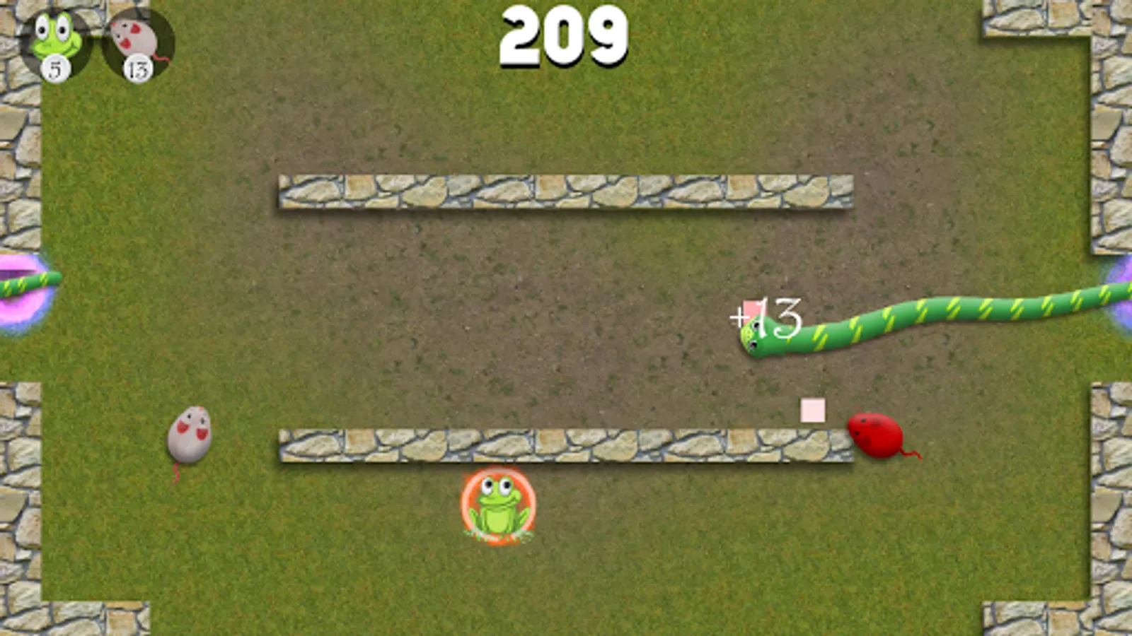 This snake game is based on idea of our beloved classic snake xenzia game. In this game controls are modified according to screens of android phones. Target is to eat more and more frogs to keep the snake growing. Snake can also eat mouse. Some poisonous mice are also wandering in the field, eating them will reduce score.