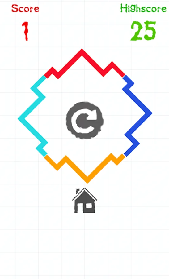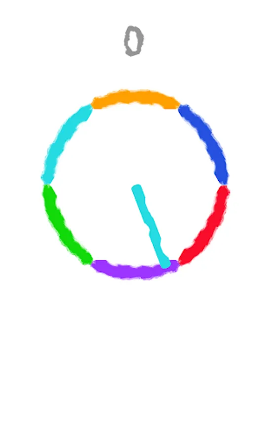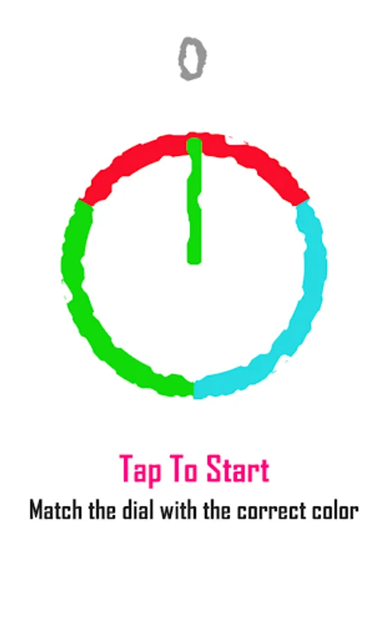 A wheel with colored segments is on the screen and player needs to tap the rotating dial at the correct color. If the matching color is missed, the game is over. Every time player starts the game, the color of the segments of the wheel and the dial changes.