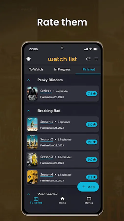 - When you have finished watching a season of a TV series, the application will suggest you to add the next season to your list if it exists