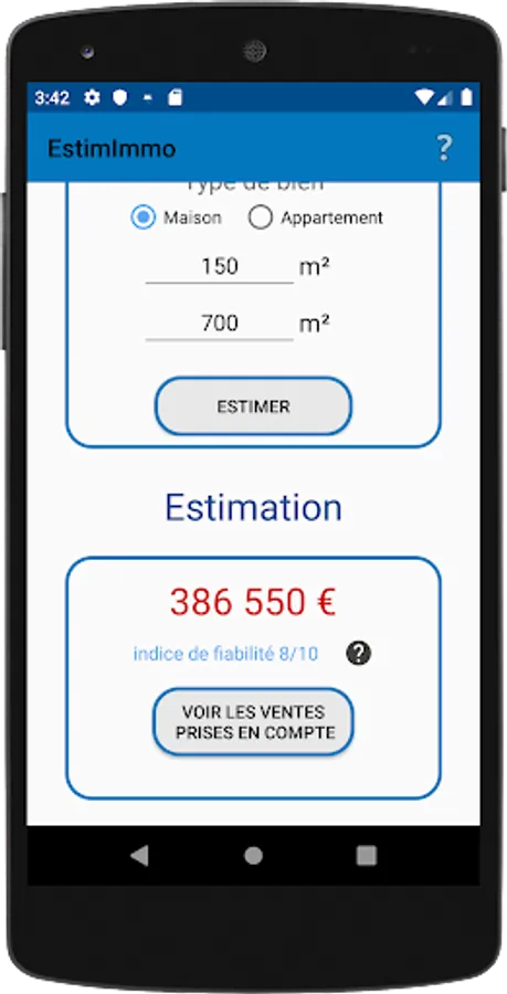 EstimImmo uses the DVF database (real estate value data) to estimate a property based on the sales made.