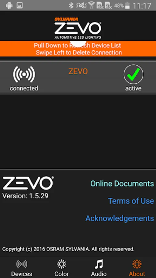 This application allows for communication to a ZEVO Bluetooth LED controller made by SYLVANIA Automotive Lighting.