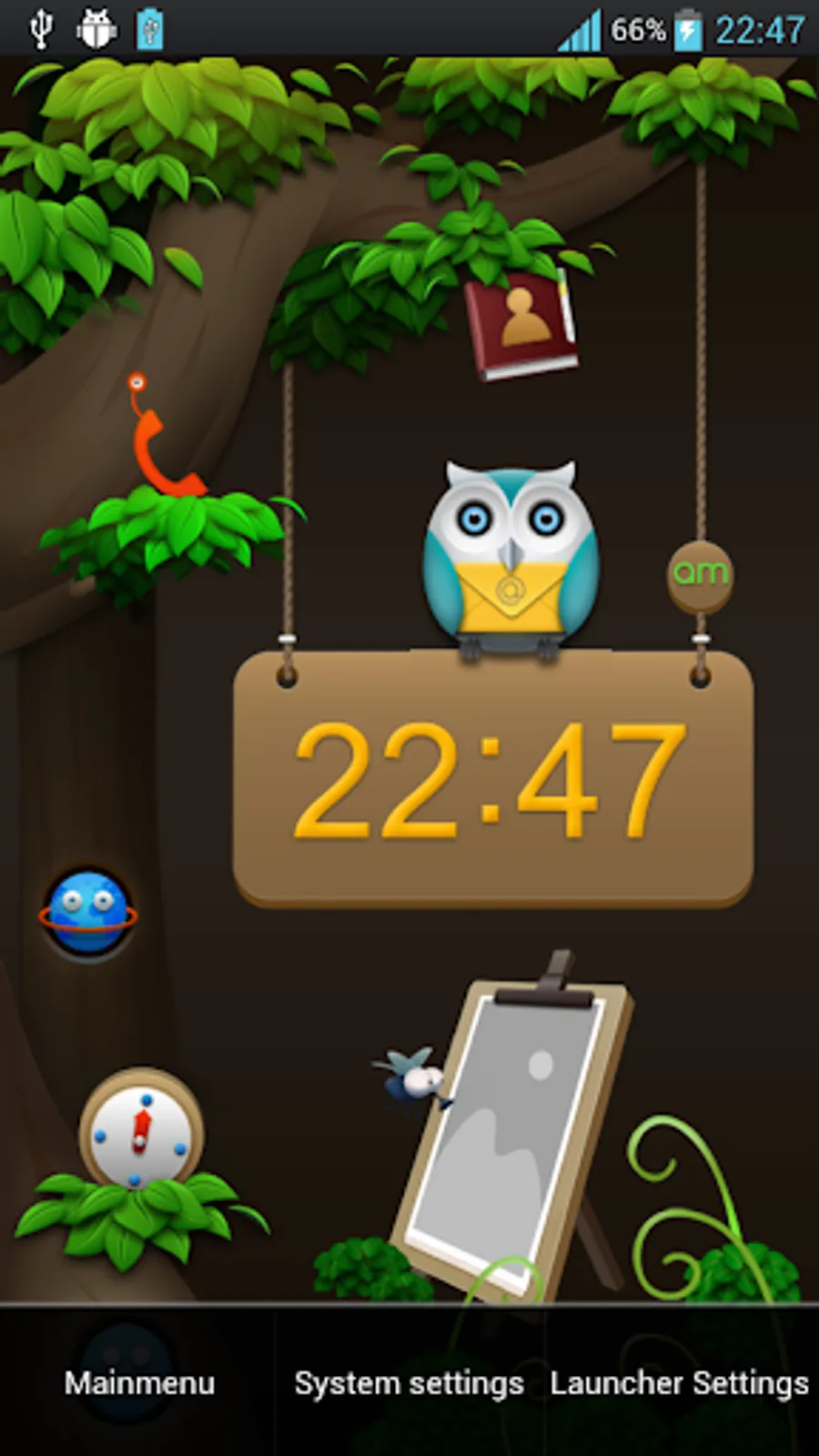 If you are tired of the system itself, desktop, try "jungle scene Launcher", it can bring you a refreshing effect, we will open rigid app shortcuts into the scene, such as telephone, calendar, contacts, clock, camera, photo album and so on, leaving you satisfied with the icon on the desktop can be set to whatever you want to open the app.