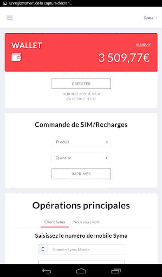You will find in this interface different sections which will allow you to consult promotions, to place orders and above all to carry out, in just a few clicks, services: registration / activation of Syma SIM cards, reloading, SWAP, portability or subscription packages and PASS.