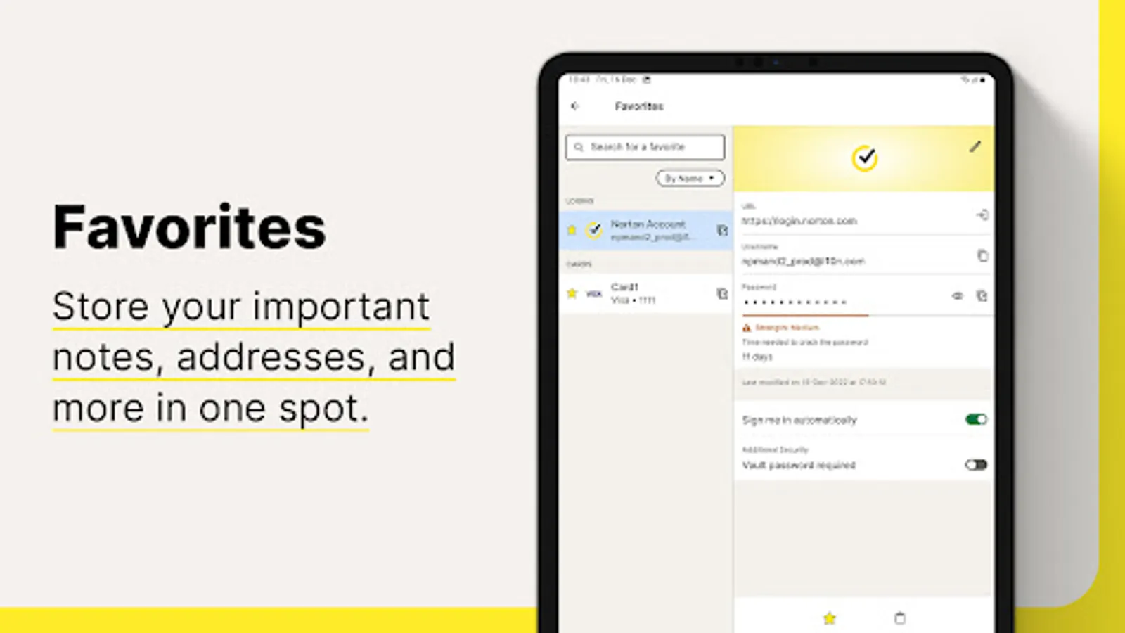 Norton Password Manager uses Accessibility features provided by Android to fill credentials stored in your vault.