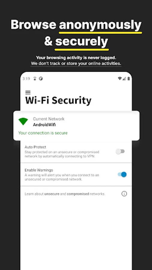 Choose to automatically secure your connection if you connect to suspicious Wi-Fi networks.