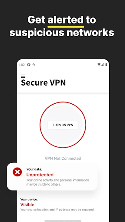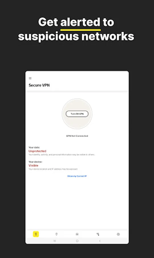 Bank-grade VPN encryption helps make your data unreadable when using a Wi-Fi network. Norton Secure VPN for Android helps maintain your privacy by preventing others on the network from eavesdropping on your internet activity.