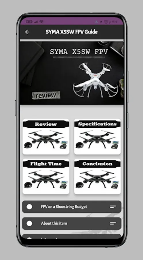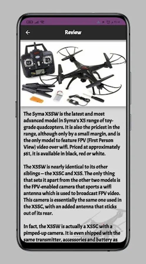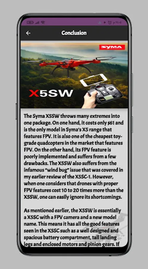 Through the application, you can easily see all the features of the SYMA X5SW FPV and review the SYMA X5SW FPV by watching the actual video of the SYMA X5SW FPV