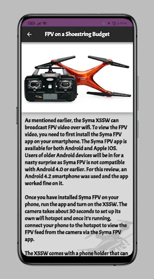 The SYMA X5SW FPV Drone app provides you with many information about the SYMA X5SW FPV Drone You can learn the details and information of how to operate the SYMA X5SW FPV, and through the app you can how to operate the SYMA X5SW FPV