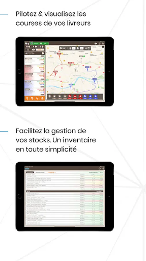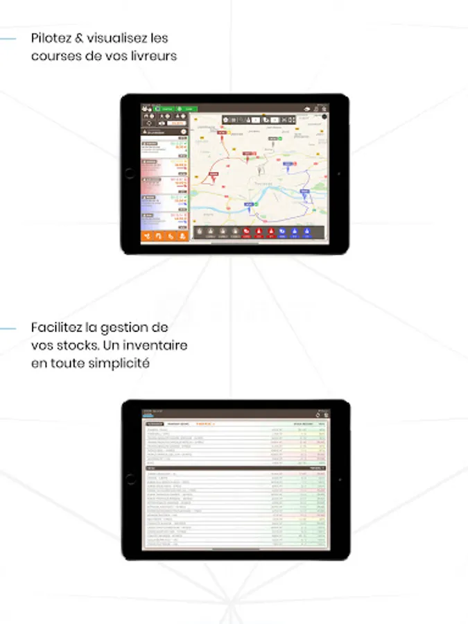 Application on iPad allowing stock movements, purchase orders, supplier invoices, inventories and calculation of raw material costs. Automatic generation of purchase orders by supplier.