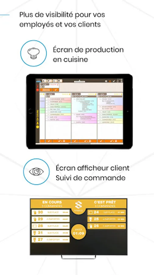 Order tracking module for your customers. Manage the wait in your restaurant, limit abandoned baskets by allowing your customers to follow live the time needed to be served.