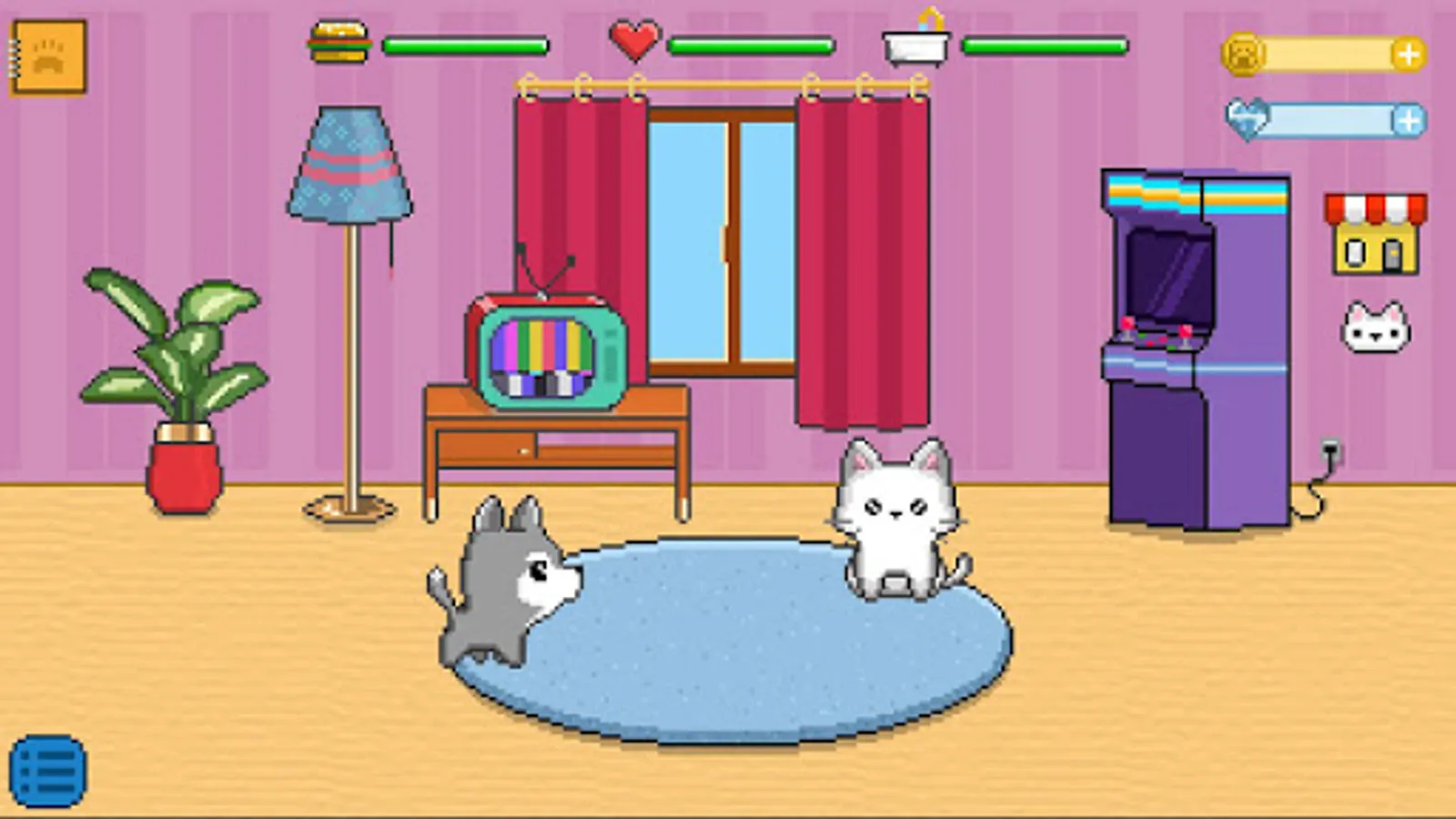 Care about your fluffy pixel pets, watch they growing, play with them and have fun!