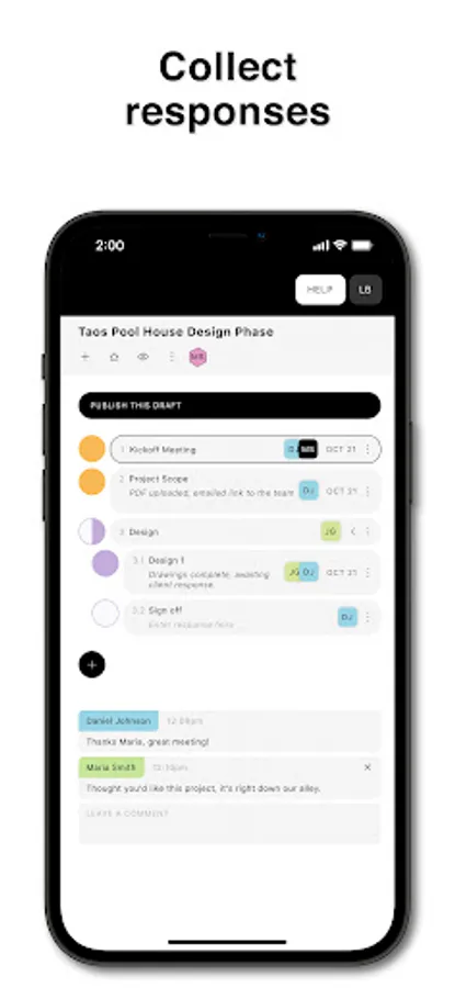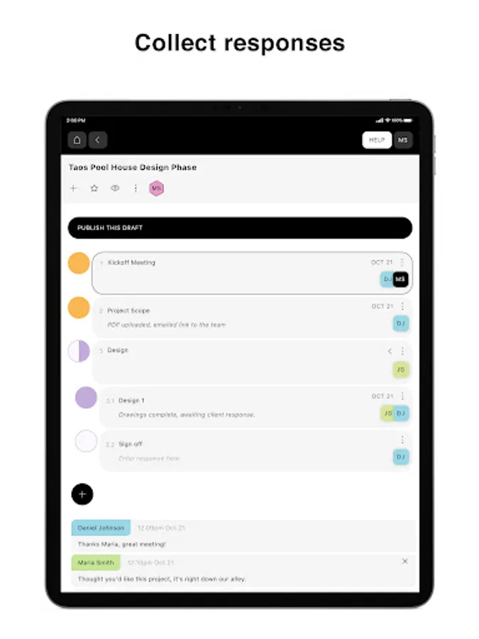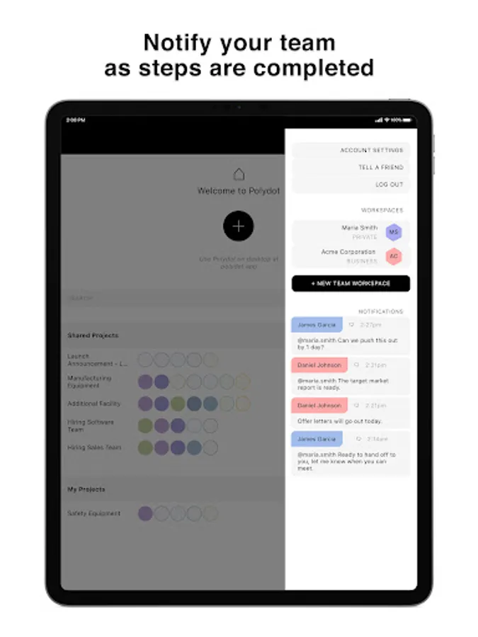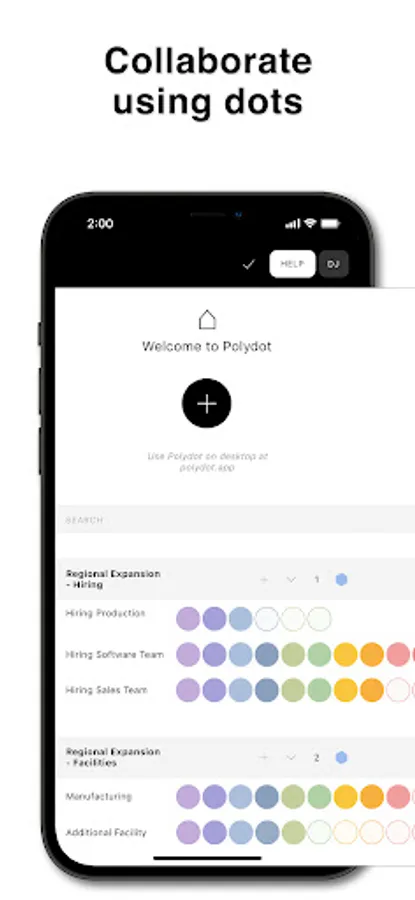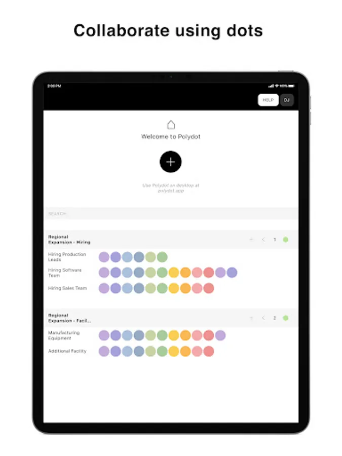 Polydot is a simple interface for helping you clarify steps and get things done with other people – including people that don’t have the app yet.