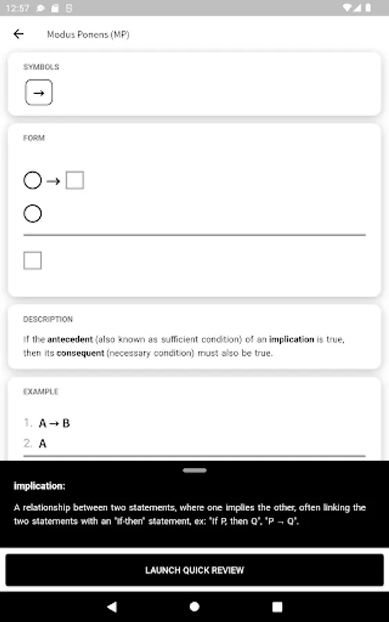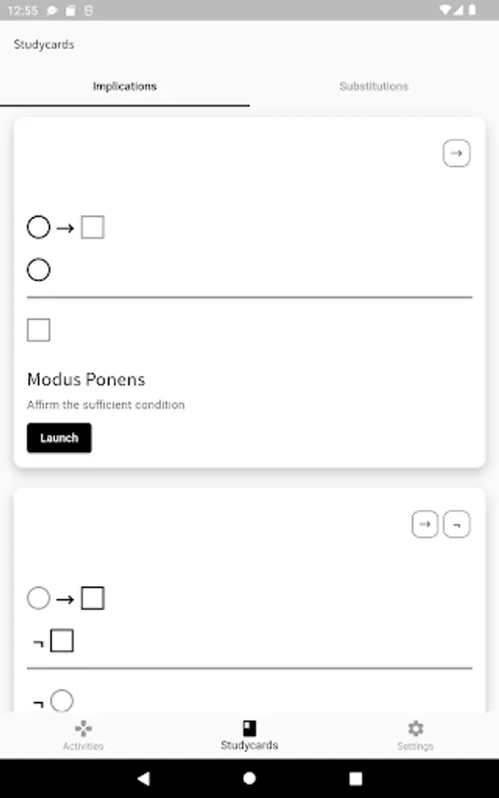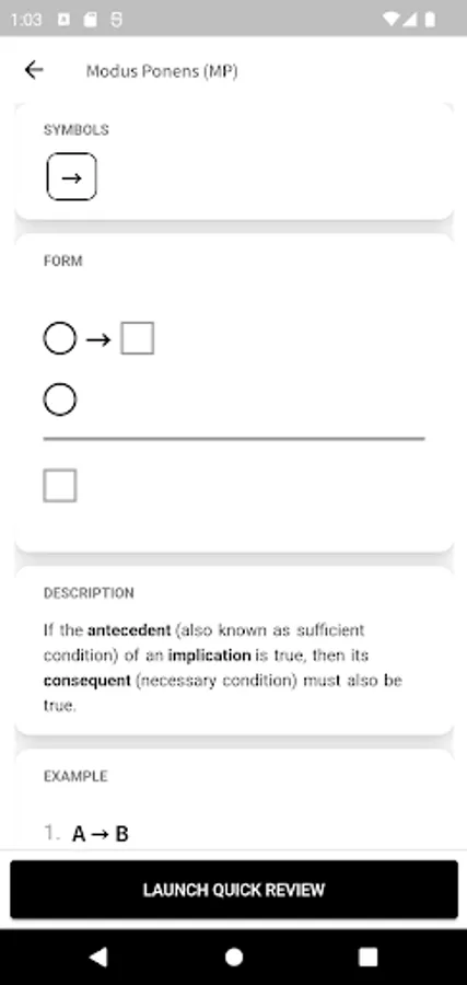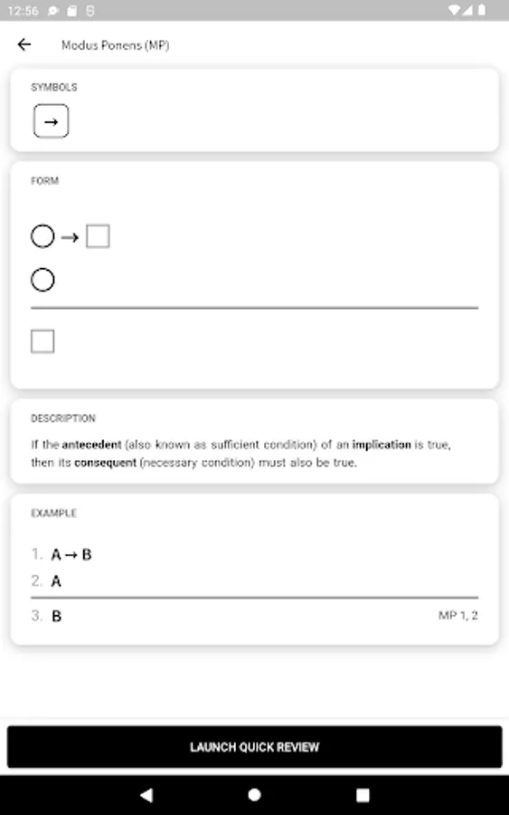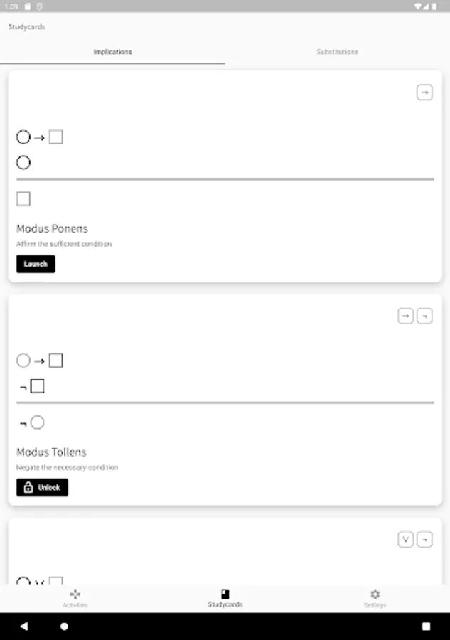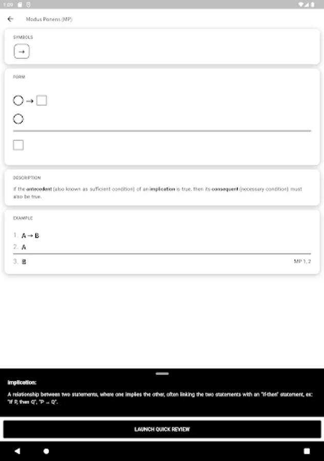 With Symbols, learning natural deduction and the rules of inference can be done on your mobile device. Whether you are completely new to the study of logic or want a refresher on the rules of inference, our Studycards help you learn and review; and our Activities help you improve and practice your skills.
