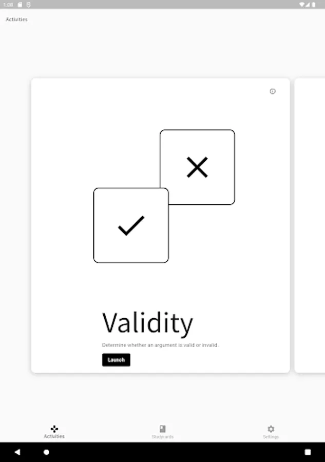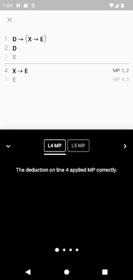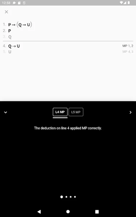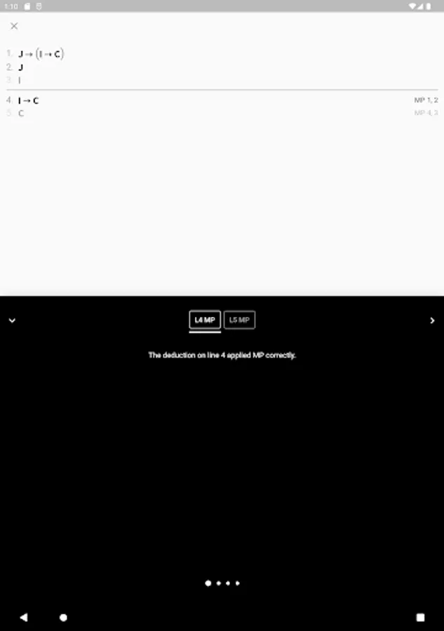 1. Validity: Validity sneakily uses repetition to teach the student the rules of inference. Let’s face it, repetition works effectively but it can often feel like a chore. The way Validity gives you the upside of repetition while minimizing its downside is by introducing you to novel arguments that have already been “solved”. You then have to determine if the solution applied every step correctly. Repetition is at the heart of skill-building, but to minimize the feeling of “wax on and wax off” until the student is bored and frustrated, the stimulus is novel and the part that feels most like work is already laid out for you. All you have to do is determine if the steps were applied correctly.