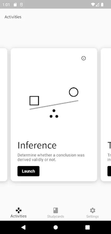 3. Inference: Inference provides a user with only a set of premises and a final conclusion. By the time the student has reached Inference, their training wheels are completely off, and everything that they learned previously must be used to either mentally construct a valid argument with what is provided or come to the conclusion that one cannot be validly drawn. What is normally completed with a paper and pencil is completed at the speed of thought.