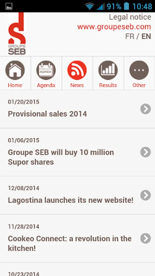 The content of this application is updated at the same time as the website www.groupeseb.com.