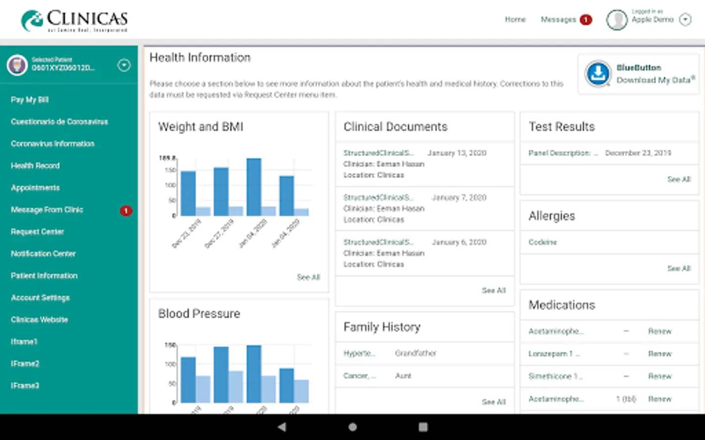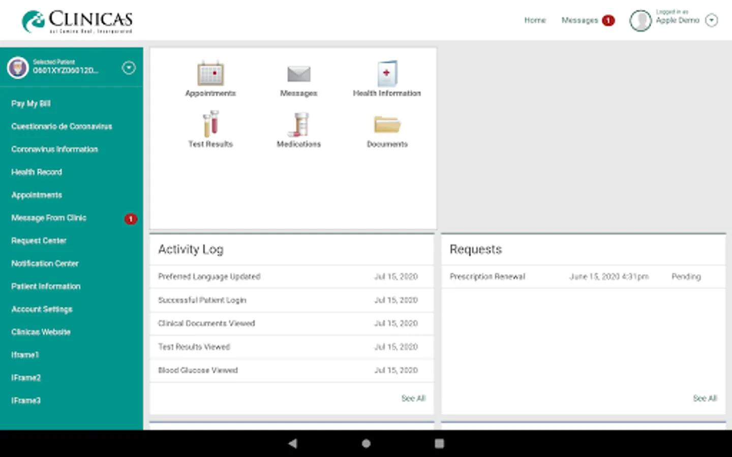 The Clinicas Patient Portal mobile app provides you real-time and easy access to your latest health care information, appointments and enables you to communicate with your care team through a secure messaging system where your confidential information is always kept safe.