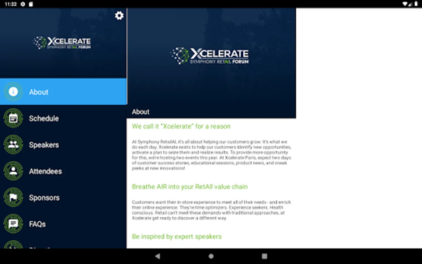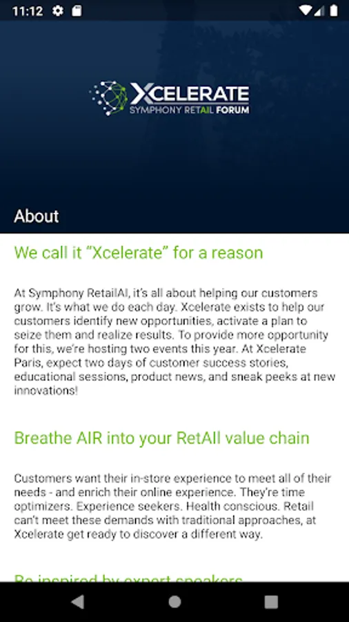 Event app for the Xcelerate Retail Forum, Symphony RetailAI’s customer event.