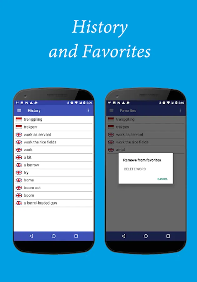 Tired carry a large and heavy dictionary? Now all you need is in your smartphone! English-Indonesian and Indonesian-English dictionaries offline be always with you, wherever you are - at school, traveling or learning English/Indonesian at home. The dictionary contains about 210,000 of common and specialized words!