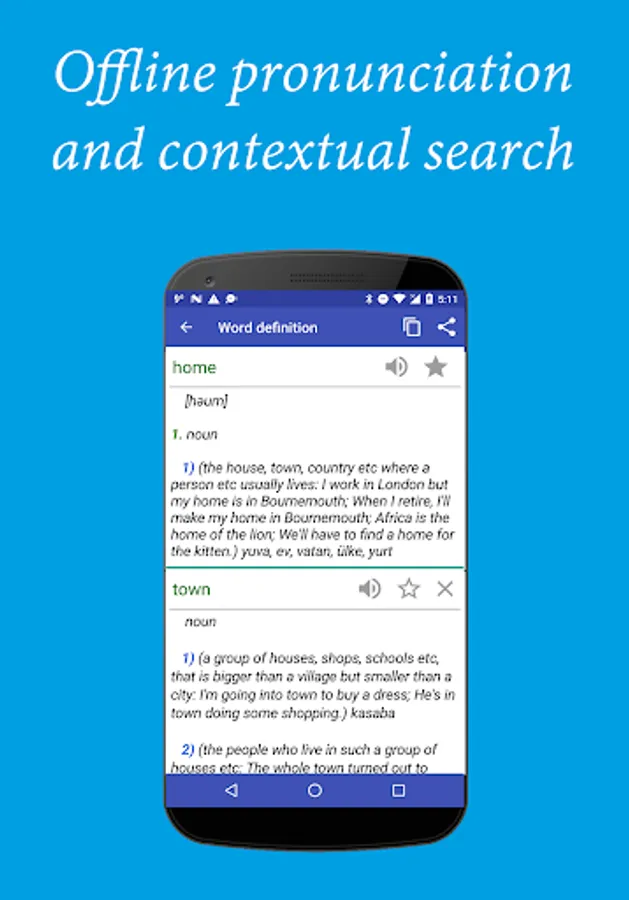 Tired carry a large and heavy dictionary? Now all you need is in your smartphone! English-Turkish and Turkish-English dictionaries offline be always with you, wherever you are - at school, traveling or doing English/Turkish at home. The dictionary contains about 285,000 of common and specialized words!